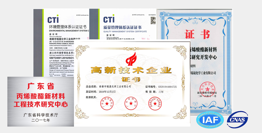 瑞晟新材料,成立于2005年,系專業(yè)從事綠色環(huán)保材料研發(fā),生產(chǎn)和銷售的高科技企業(yè)。主要產(chǎn)品包括水性UV樹脂,聚氨酯丙烯酸酯、改性環(huán)氧丙烯酸酯、丙烯酸樹脂,特殊改性聚酯樹脂以及其他特殊新材料等,年產(chǎn)量可達一萬噸。產(chǎn)品用途廣泛,涉獵眾多,主要應用于智能家電、智能穿戴、智能家居,汽車內(nèi)外飾,工程機械等。占地50畝,是專業(yè)從事新材料研發(fā)、生產(chǎn)和銷售的國家高新技術企業(yè)和廣東省專精特新中小企業(yè)。主要產(chǎn)品包括水性UV樹脂、聚氨酯丙烯酸酯、丙烯酸樹脂、聚酯樹脂、無機納米水性陶瓷樹脂以及其他特殊新材料等,年產(chǎn)量可達一萬噸。產(chǎn)品用途廣泛,符合當前環(huán)保要求。涉及產(chǎn)業(yè)眾多,主要應用于:3C(手機、筆記本電腦等)、汽車內(nèi)飾、家電家具、工程機械、市政工程等。